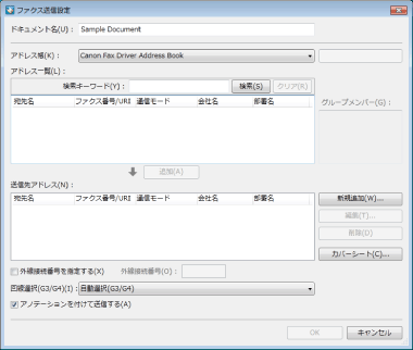IPファクスでファクス送信する場合は、本設定は無効になります。