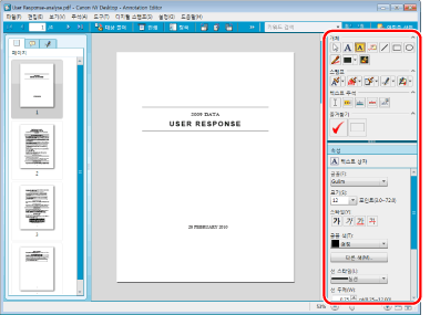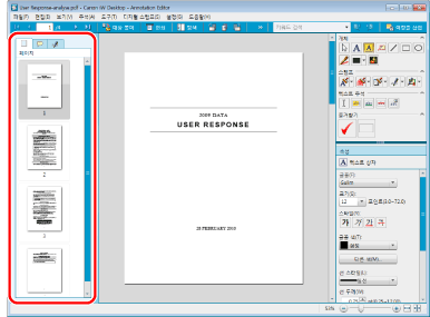 이 영역은 문서 페이지의 미리 보기를 표시하고 주석을 추가하는 데 사용됩니다.