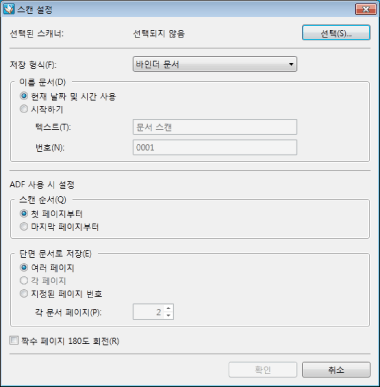 ADF(자동 문서 공급 장치)를 사용할 경우 적용할 저장 방법을 구성합니다.