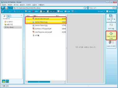 Desktop Browser 화면의 출력 표시줄을 사용하여 문서를 팩스로 송신하려면 팩스 출력 아이콘을 출력 표시줄에 추가해야 합니다. 또는 [Document Binder을(를) 사용하여 선택된 문서를 한 문서로 결합하여 팩스를 송신합니다.] 확인란을 선택하여 여러 개의 문서를 한꺼번에 팩스로 송신해야 합니다. 여러 개의 문서를 추가하고 구성하는 방법에 대한 자세한 내용은 다음을 참조하십시오.