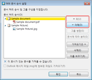[여러 문서 순서 설정]: [여러 문서 순서 설정] 대화 상자가 표시됩니다.