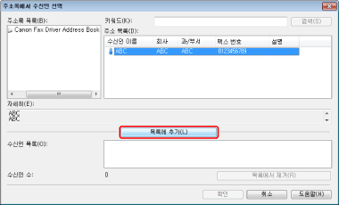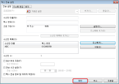 팩스 드라이버의 팩스 송신 설정 대화 상자는 팩스 드라이버에 따라 다를 수 있습니다.