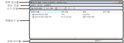 [목록 보기 창(프린터 목록 또는 포트 목록)]