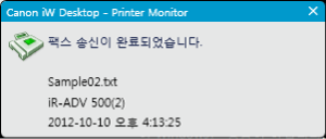 팩스가 성공적으로 송신되었을 때 표시됩니다.