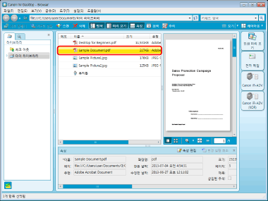마지막으로 종료될 때와 같은 위치, 크기 및 화면 구조로 Document Binder 화면이 시작되고 표시됩니다.