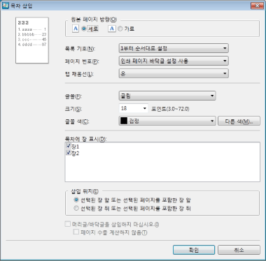 [목차 편집]이 선택된 경우 [삽입 위치]를 지정할 수 없습니다.