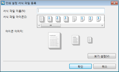 이 아이콘이 [인쇄 설정] 창의 [서식 파일] 탭에 표시됩니다.