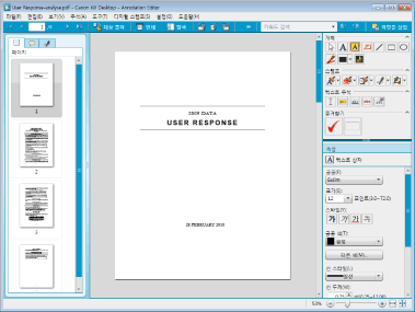 Annotation Editor에서는 Document Binder를 사용하여 만든 바인더 문서 또는 PDF 문서에 텍스트 및 그래픽을 추가할 수 있습니다. 이러한 텍스트 및 그래픽을 주석이라고 합니다. 또한 주석 달린 문서를 저장하거나 인쇄하거나 팩스로 송신할 수 있습니다. 스티커 메모를 붙이거나 형광펜으로 페이지를 표시하는 등 종이 문서를 편집할 때와 유사한 작업으로 디지털 문서를 편집할 수 있습니다. PDF 문서를 편집하기 위해 전용 응용 프로그램을 준비할 필요가 없습니다.