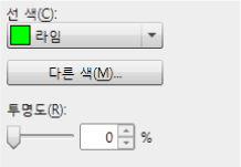 이 버튼을 클릭하면 [컬러] 대화 상자가 표시됩니다. [컬러] 대화 상자를 사용하여 [선 색]에 없는 색을 설정할 수 있습니다.