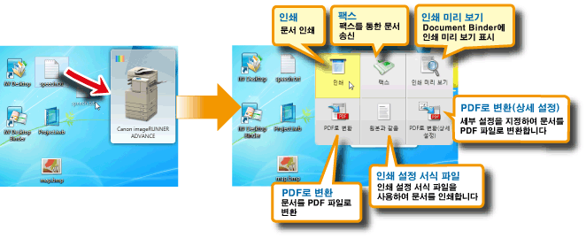 Quick Printing Tool은 인쇄 및 팩스 송신과 같은 장치 기능을 보다 직관적으로 작동할 수 있도록 하는 응용 프로그램입니다. 또한 Printer Monitor와 동일한 방식으로 imageRUNNER ADVANCE와 같은 외부 장치의 상태 및 인쇄 프로세스의 상태를 모니터링하고 인쇄, 팩스 송수신의 로그를 관리합니다.