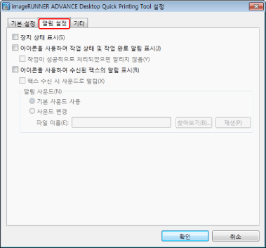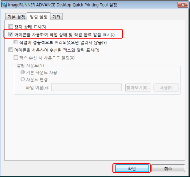 응용 프로그램이 활성화된 포트가 구성되지 않은 경우 [아이콘을 사용하여 작업 상태 및 작업 완료 알림 표시]를 선택한 다음 설정에서 [확인]을 클릭하여 포트를 자동 변경합니다.