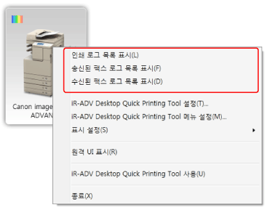 로그 목록에 표시되는 작업 기록은 Quick Printing Tool에서 실행되는 작업뿐만 아니라 장치에서 실행되는 모든 작업도 포함합니다.