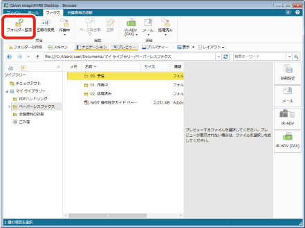 [ファクス]タブの[フォルダー監視]をクリックします。