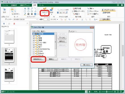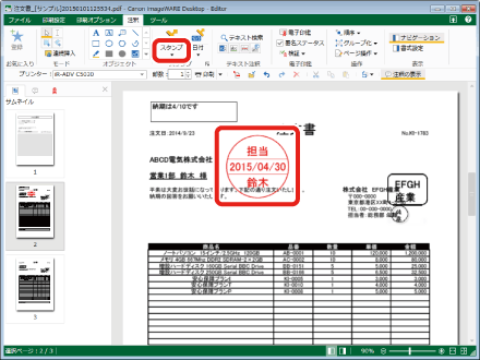 Desktop Editorを使用して注文書に担当者印を挿入します。
