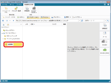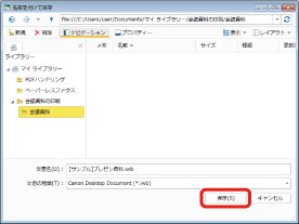 「会議資料」フォルダーを選択し、文書の種類が[Canon Desktop Document]になっていることを確認して[保存]をクリックします。