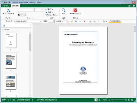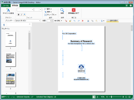 ワークウィンドウでオブジェクトを選択すると、選択されているオブジェクト総数とテキストオブジェクト数がステータスバーに表示されます。