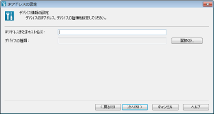 [IPアドレスまたはホスト名]にデバイスのIPアドレス、またはホスト名を入力して[次へ]をクリックしたときに、デバイスの情報が取得できなかった場合は、メッセージが表示されます。[OK]をクリックして表示される[デバイスの種類の選択]ダイアログボックスで、デバイスの種類を選択してください。