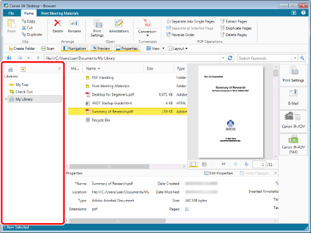 The Navigation Window is used to organize multiple libraries and list the folder structure inside libraries. It also enables you to list saved search conditions.