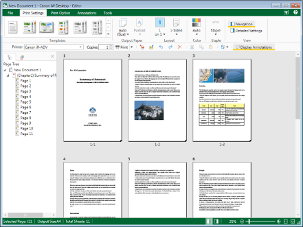 Desktop Editor adds print settings to documents, and enables you to perform actions such as adjusting and editing documents. You can also combine documents, change their page order, and delete unnecessary pages. By saving in the IWB format (*.iwb), you can save print settings with the document.