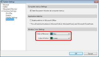 Select the color to change to from the [Color of Browser] or [Color of Editor] pull-down list.