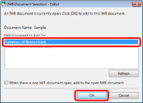 When you click [Refresh] in the [IWB Document Selection - Editor] dialog box, a list of the documents opened in Desktop Editor is updated.