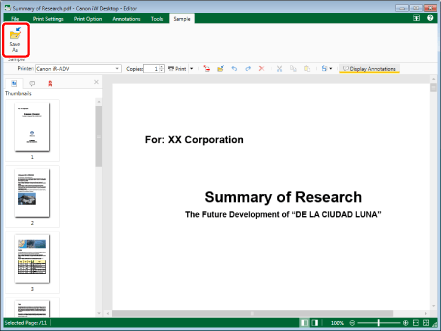 If you switch to the [Print Settings] tab or [Print Option] tab on the ribbon, a confirmation message is displayed when overwriting. To overwrite the PDF document, click [Yes].