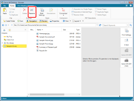 Select the library to rename from the Navigation Window.