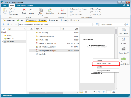 for the output button displayed on the ribbon or toolbar and selecting [Select Button Color]. If an output button is not displayed on the ribbon or toolbar, see the following to display one. |