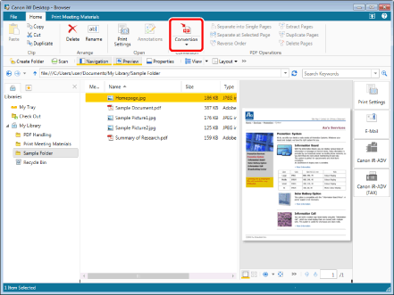 (Conversion) on the ribbon, and select [Convert to PDF Document]