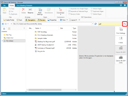 The path of the search target library or folder is displayed in [Search Location] on the Search Screen.