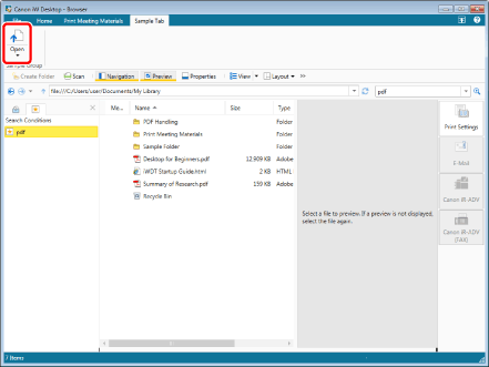This operation can also be performed with the tool buttons on the toolbar. If tool buttons are not displayed on the toolbar of Desktop Browser, see the following to display them.