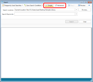 The path of the search target library or folder is displayed in [Search Location] on the Search Screen.