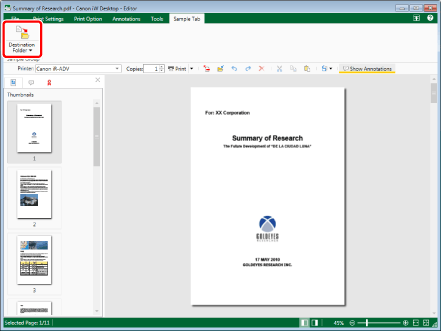 Click  for a Document Destination Folder displayed on the toolbar