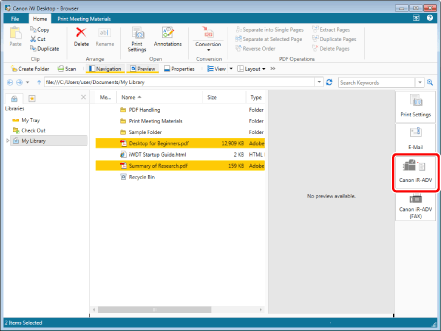 Select a document/folder to print in the File List View Window, and click  (printer output button).