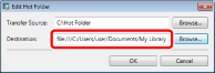 You can select a folder stored in a library in the [Browse] dialog box that is displayed when [Browse] is clicked. Alternatively, in the [Browse] dialog box, you can create a new folder in a library and select it.