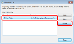 Even when you delete the hot folder settings by using the abovementioned steps, the Windows Folder which has been specified as the source folder is not deleted.