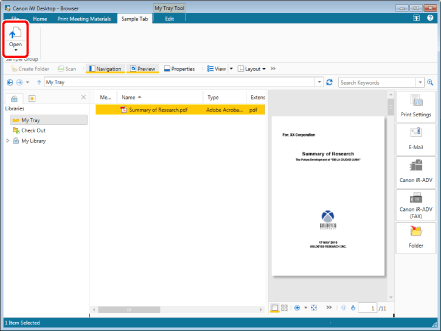 The document circulated to the receiving folder is transferred to the My Tray. The received document can be opened with one of the following procedures.
