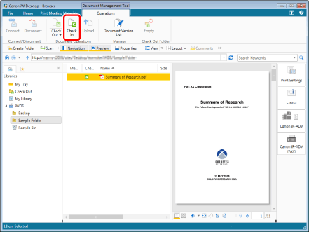 Or, right-click and select [Check In Document].