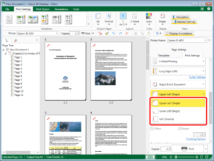 If you do not want to use stapling, select [No Stapling] on the [Print Settings] tab on the Details Window, the ribbon command, or the tool button.