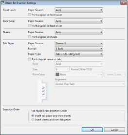When the setting is specified in combination with interleaving paper (inserted sheet) and tab paper, you can set the insertion order.