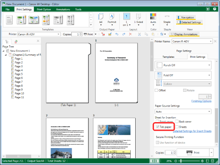 Select the [Tab paper] check box in [Sheet for Insertion] on the [Print Settings] tab on the Details Window.