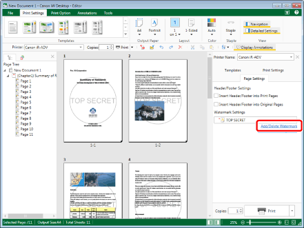 If you added multiple watermarks to [Currently Set Watermarks] in the [Add/Delete Watermark] dialog box displayed by clicking [Add/Delete Watermark] on the [Page Settings] tab on the Details Window, the watermark pull-down list on the [Page Settings] tab on the Details Window changes to [Custom].