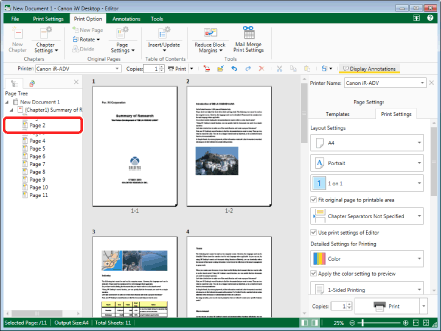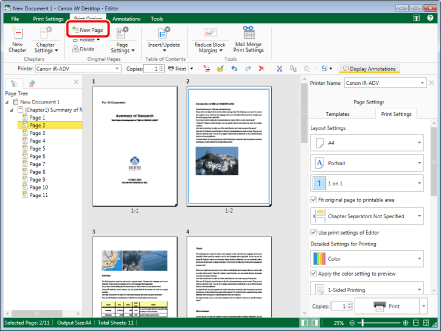 If you selected a chapter as the position to insert the new page, the new page is added as the first page of the chapter, with the same paper size/orientation as the first page of the selected chapter. If no pages exist in the selected chapter, a new page is added with the same paper size/orientation as the output paper size/orientation settings set for the selected chapter.
