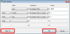 You can also disable a filter by deselecting the [Set filters for filtering records] check box in the [Database Connection/Settings] dialog box.