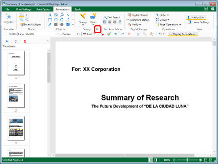 This operation can also be performed with the tool buttons on the toolbar. If tool buttons are not displayed in the toolbar of Desktop Editor, see the following to display them.
