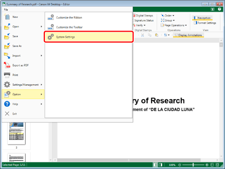 Select the [File] menu > [Option] > [System Settings].