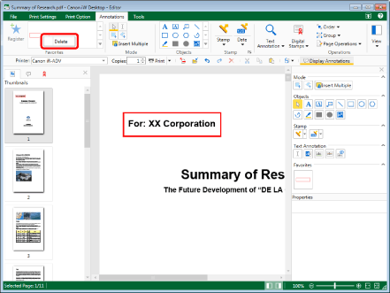 If multiple annotations are selected and registered in Favorites, those registered annotations will be grouped when inserted. For more information on grouping annotations, see the following.