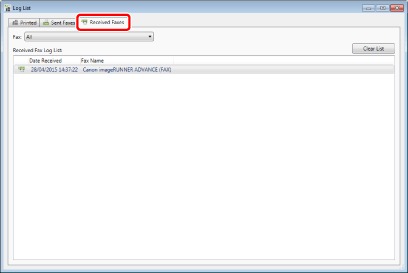 When receiving a fax, right-click  (Received Fax Log List) on the Taskbar, and select [Display Received Fax Log List]