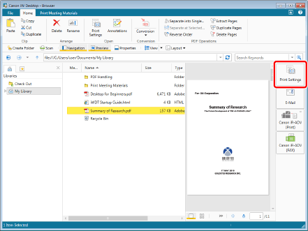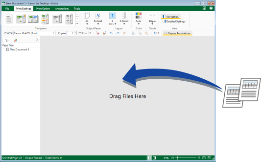 Documents in different file formats can be combined as a single document. This combined document is called an IWB document. Because you can save the configured print settings together with documents, it is unnecessary to specify the print settings every time.