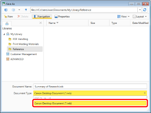 Select [Document Type] > [Canon Desktop Document (*.iwb)].